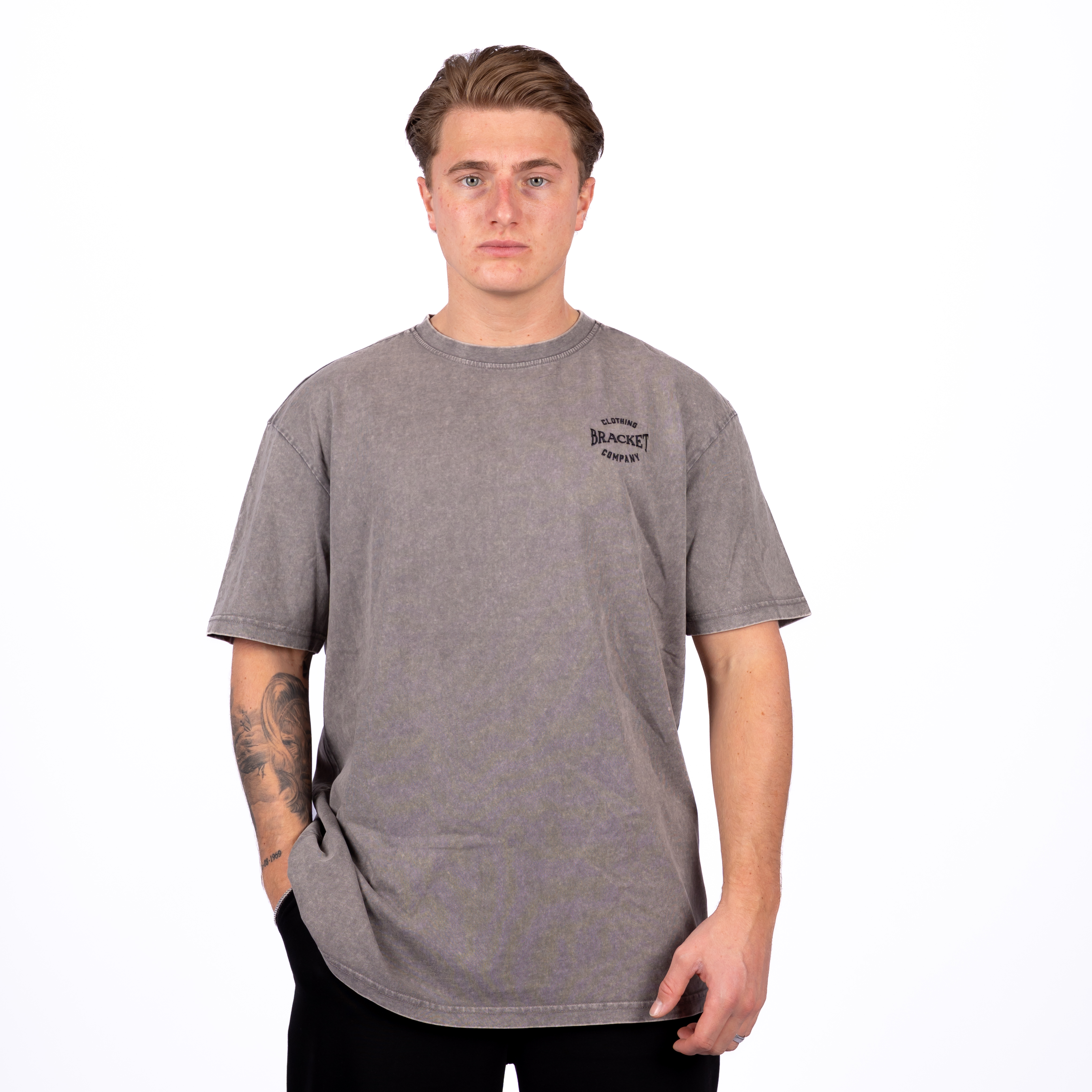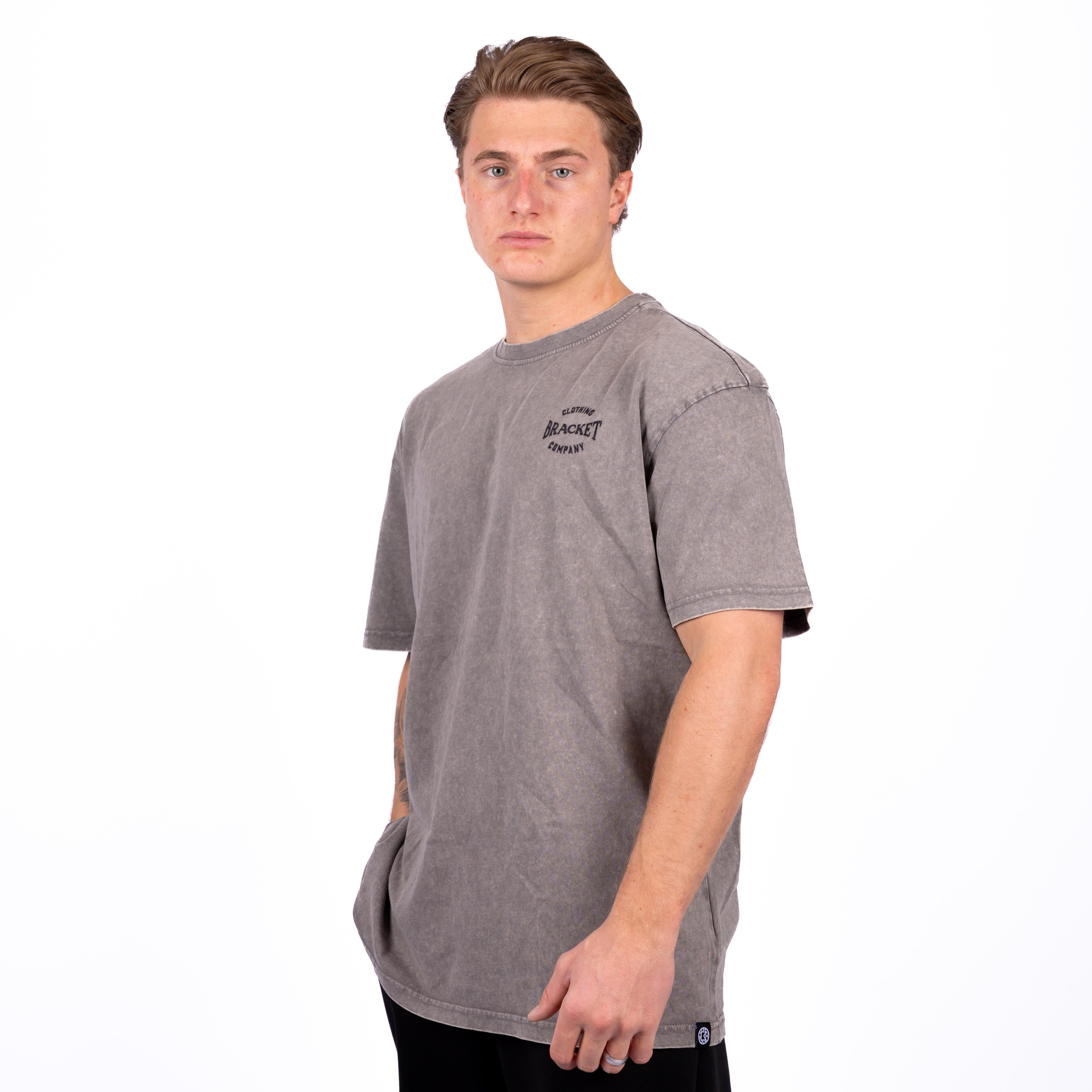 De BRACKET Washed Oversized Tee in Grey heeft een relaxed silhouet en een gewassen finish voor een gedragen look. Gemaakt van zacht katoen en ontworpen voor comfort met karakter. Een essential met edge.