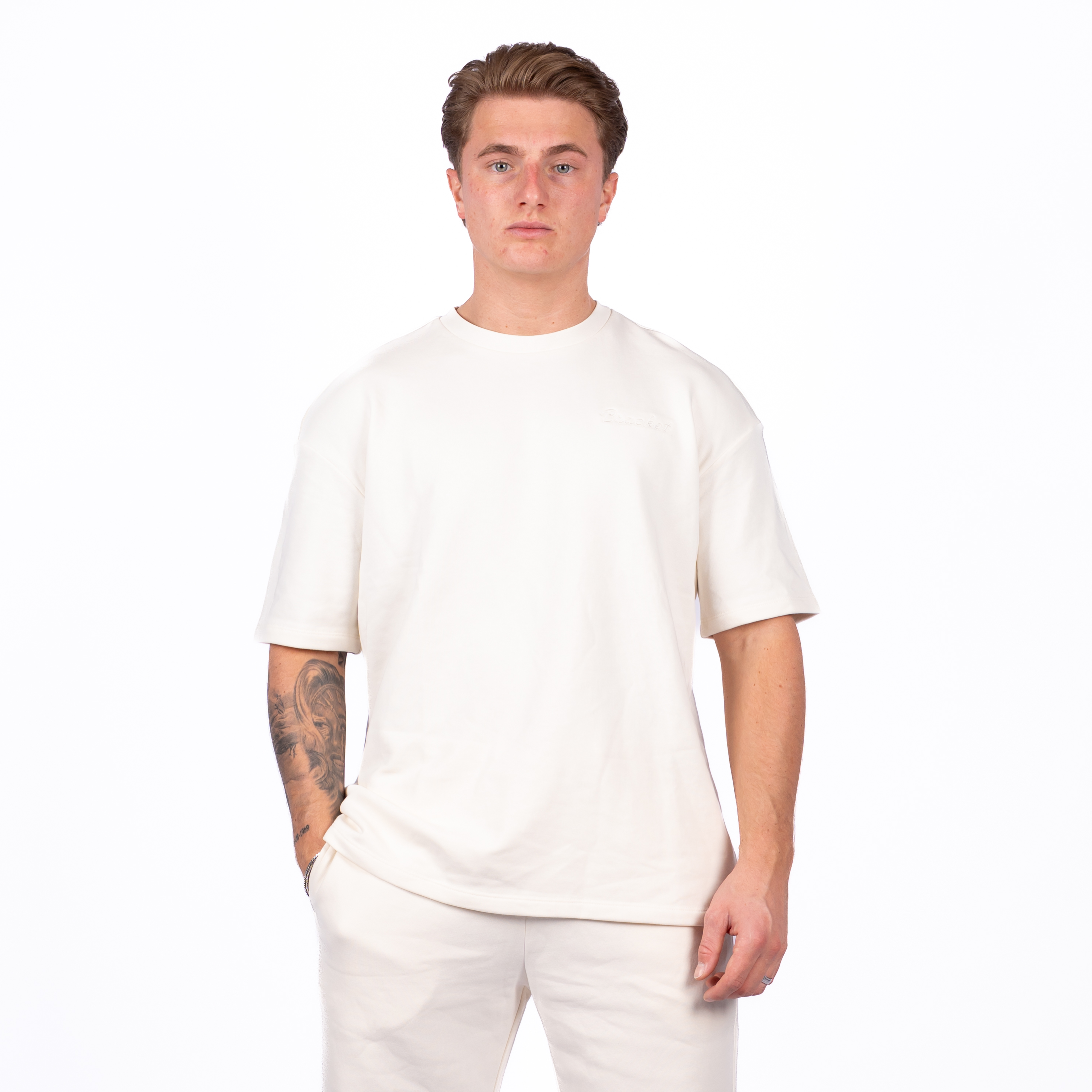 BRACKET Oversized Shirt Ton Sur Ton Logo Creme